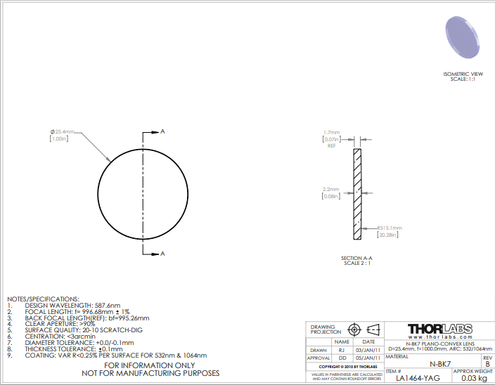 Thorlabs索雷博    LA1464-YAG   平凸透镜
