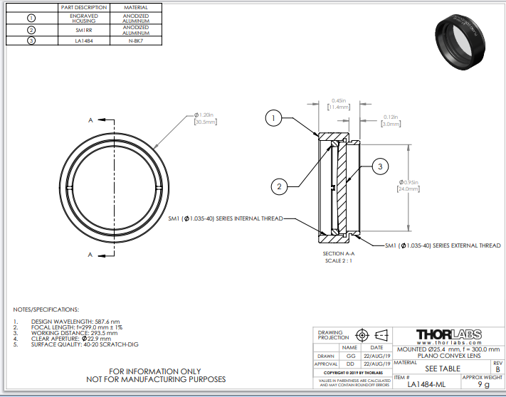 Thorlabs索雷博    LA1484-ML   平凸透镜