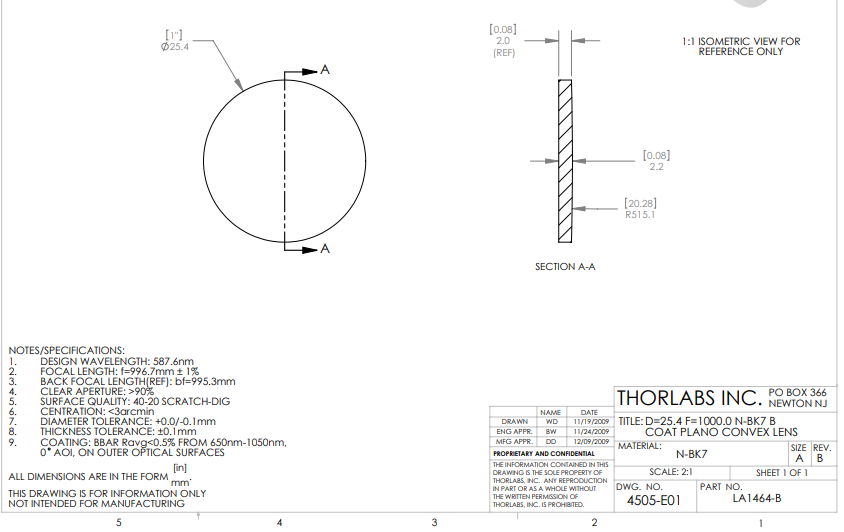 Thorlabs索雷博 LA1464-B 平凸透镜