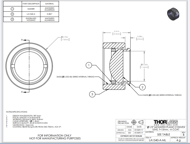 Thorlabs索雷博    LA1540-A-ML   平凸透镜