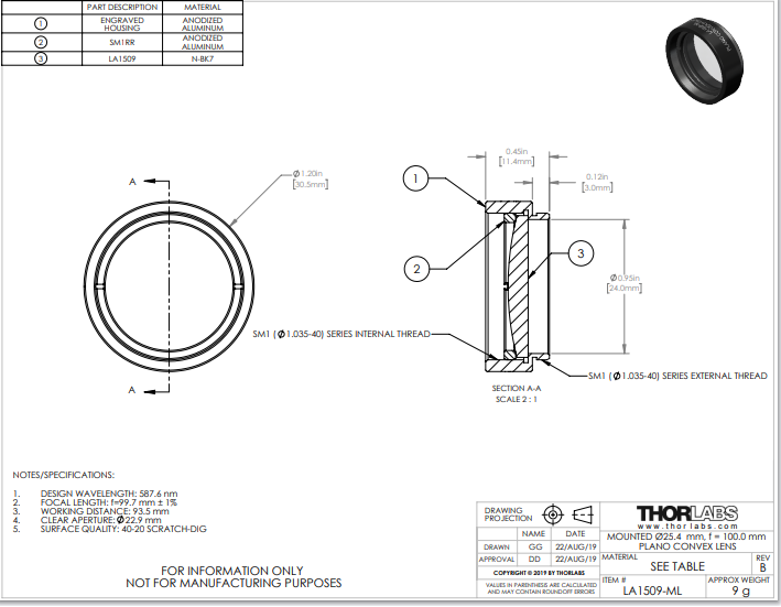 Thorlabs索雷博    LA1509-ML   平凸透镜