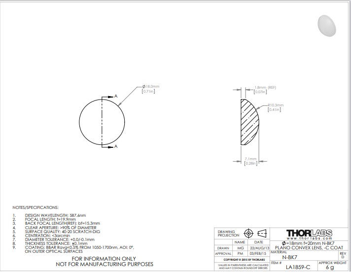 Thorlabs索雷博 LA1859-C 平凸透镜