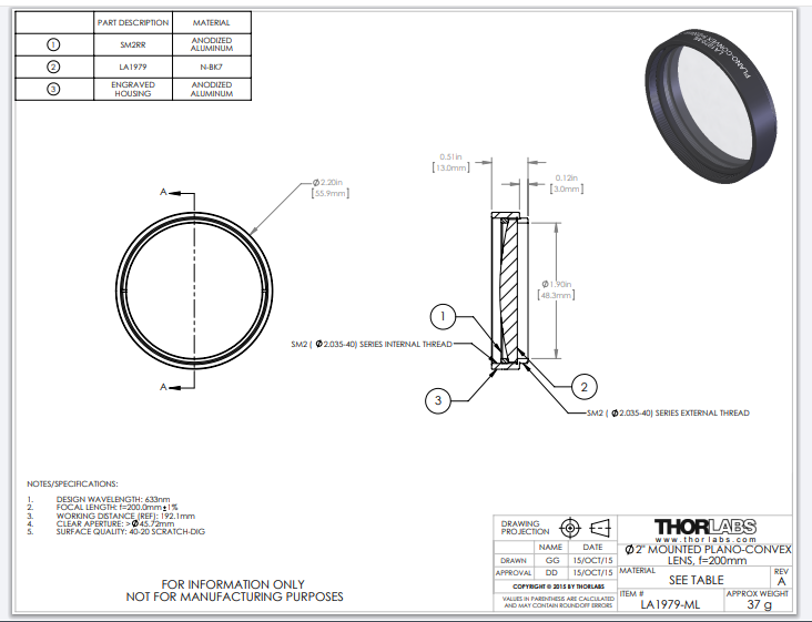 Thorlabs索雷博    LA1979-ML   平凸透镜
