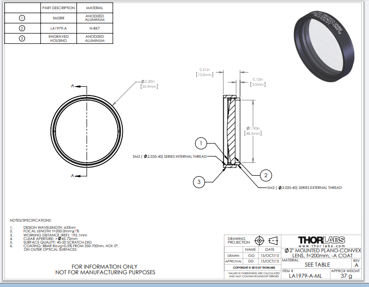 Thorlabs索雷博 LA1979-A-ML 平凸透镜