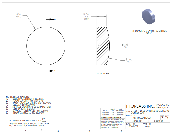 Thorlabs索雷博    LA4194   平凸透镜