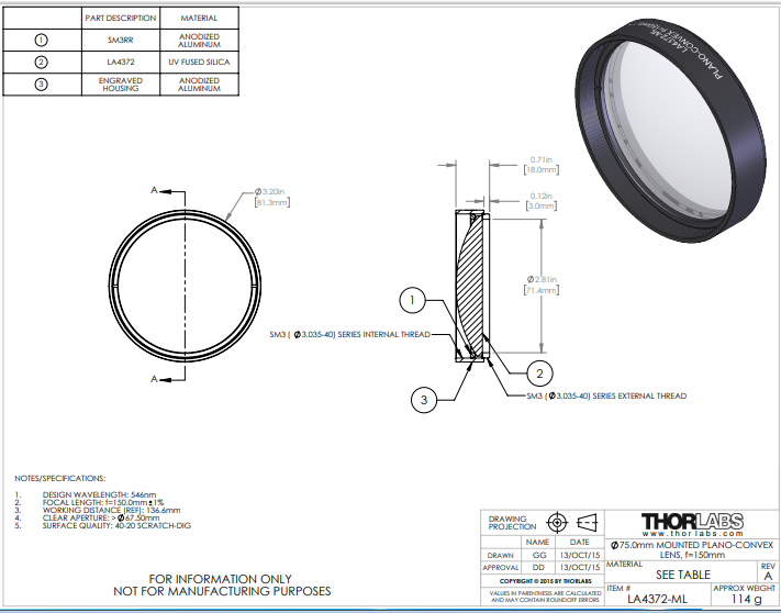 Thorlabs索雷博    LA4372-ML 平凸透镜