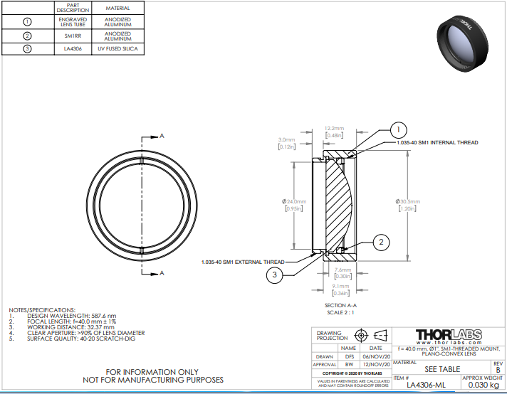 Thorlabs索雷博    LA4306-ML   平凸透镜