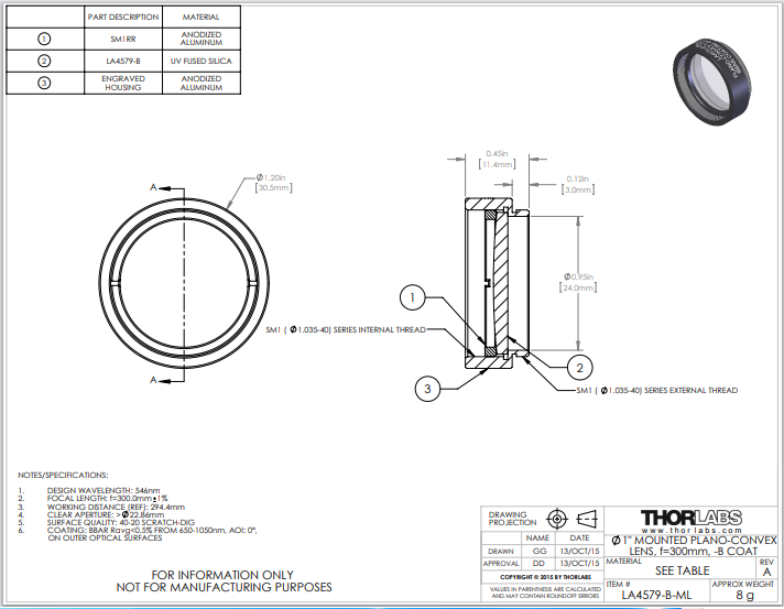 Thorlabs索雷博 LA4579-B-ML 平凸透镜