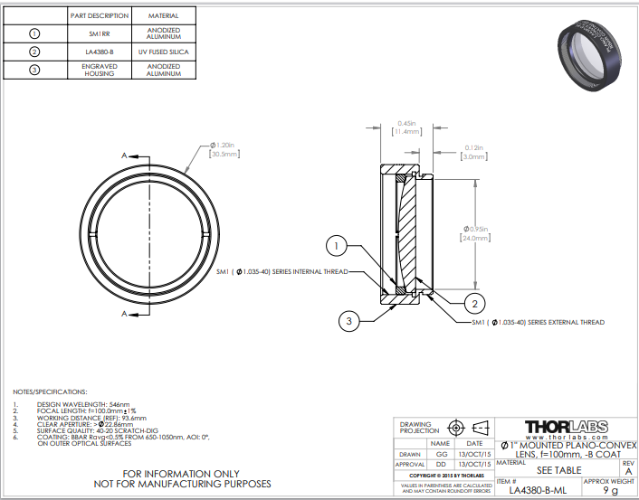 Thorlabs索雷博    LA4380-B-ML   平凸透镜