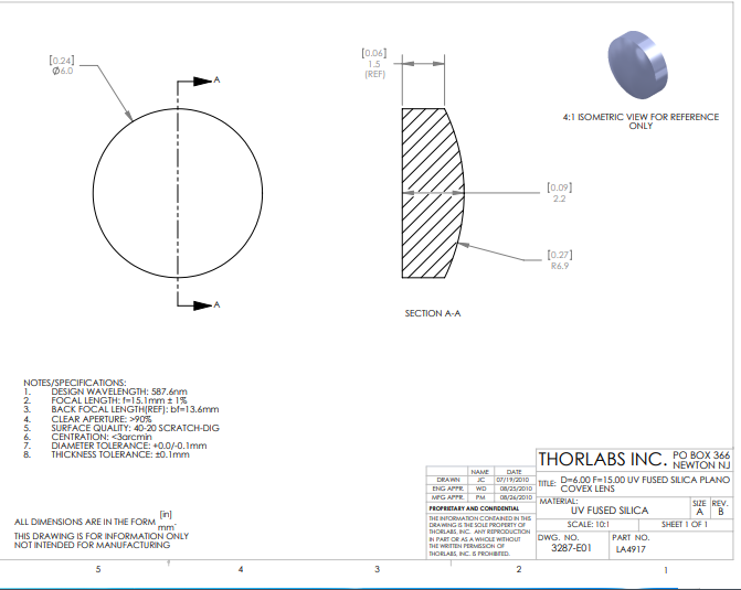 Thorlabs索雷博    LA4917   平凸透镜