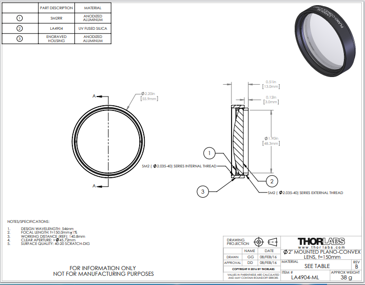 Thorlabs索雷博    LA4904-ML   平凸透镜
