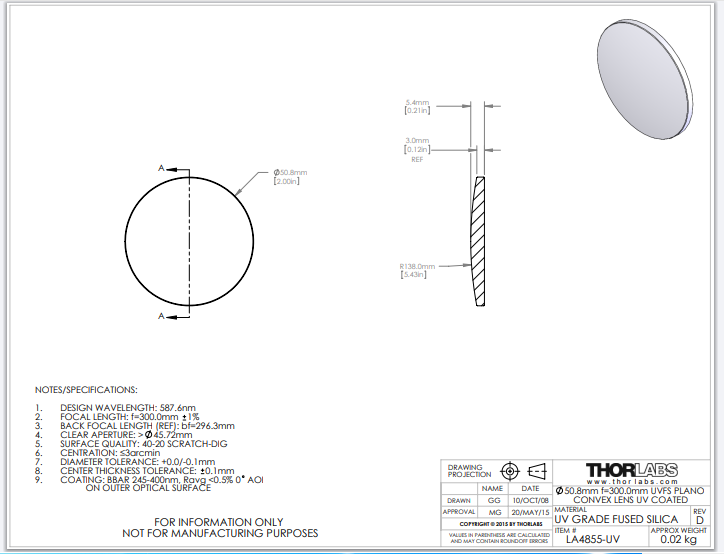Thorlabs索雷博    LA4855-UV   平凸透镜