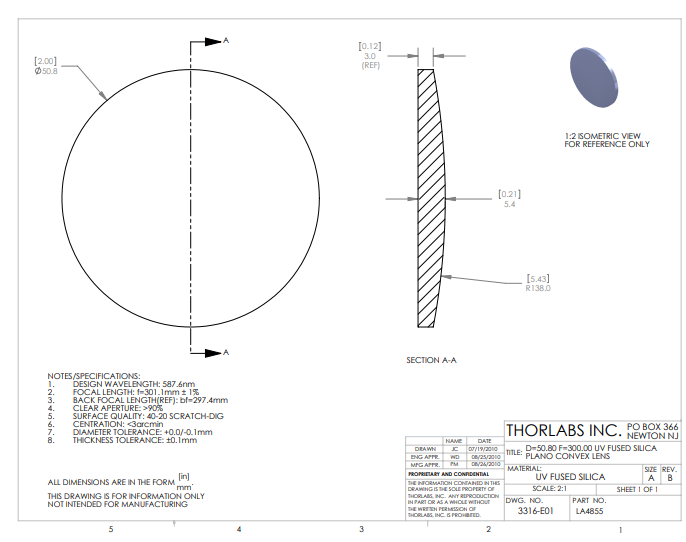 Thorlabs索雷博 LA4855 平凸透镜