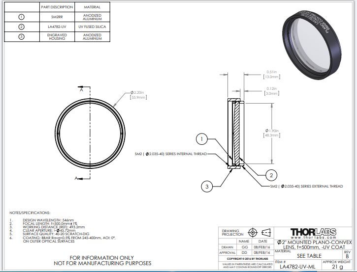 Thorlabs索雷博    LA4782-UV-ML   平凸透镜