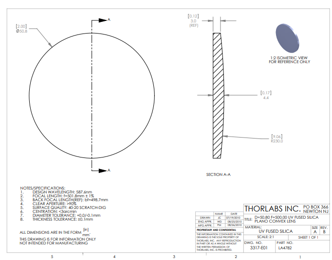 Thorlabs索雷博    LA4782   平凸透镜