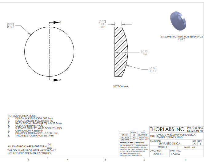 Thorlabs索雷博    LA4936   平凸透镜