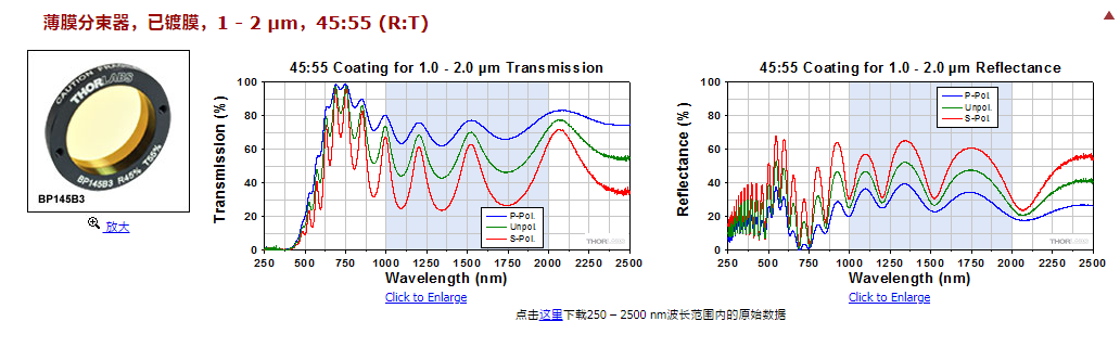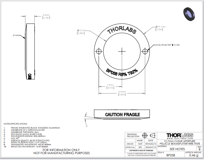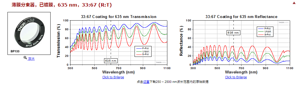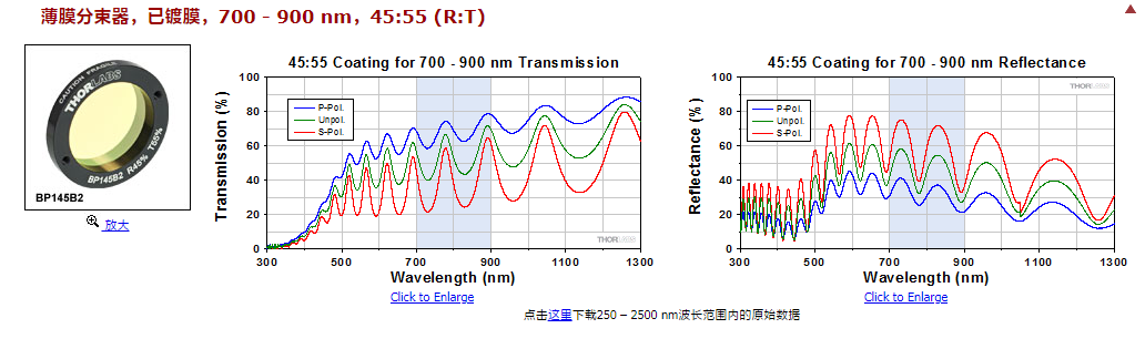 Thorlabs索雷博 BP058 - Ø1/2英寸薄膜分束器