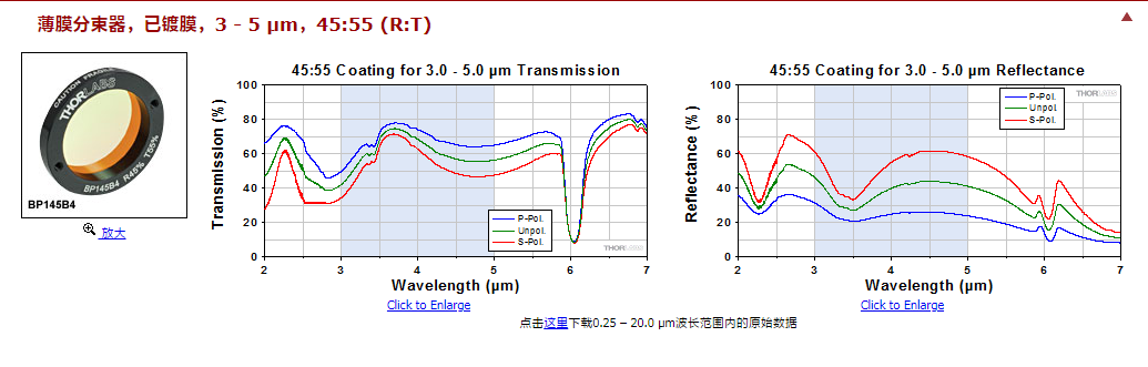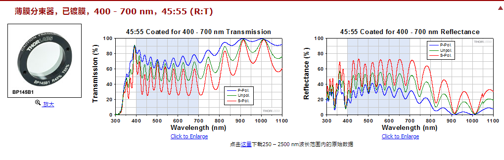 Thorlabs索雷博   BP145B1 - Ø1英寸薄膜分束器