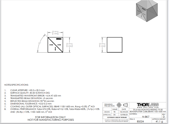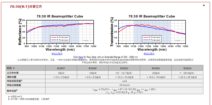Thorlabs索雷博 BS024 - 70:30(R:T)非偏振分束立方
