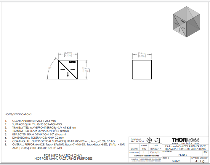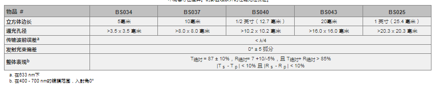 Thorlabs索雷博   BS025   10:90(R:T)非偏振分束立方