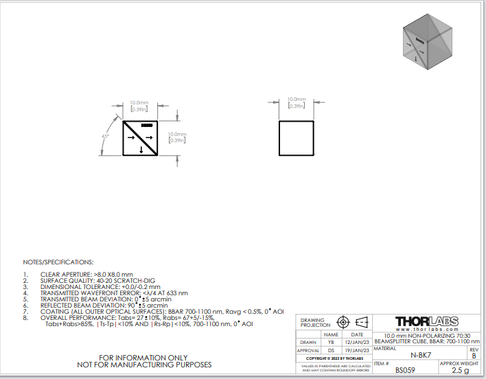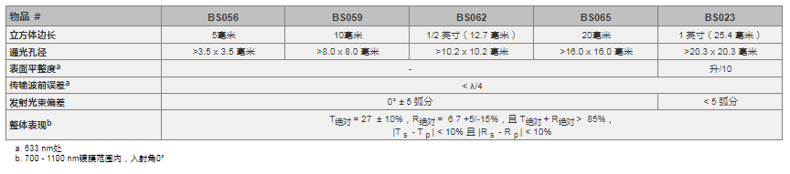Thorlabs索雷博 BS059 70:30(R:T)非偏振分束立方