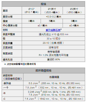 Thorlabs索雷博 BSF10-UV 光束采样镜