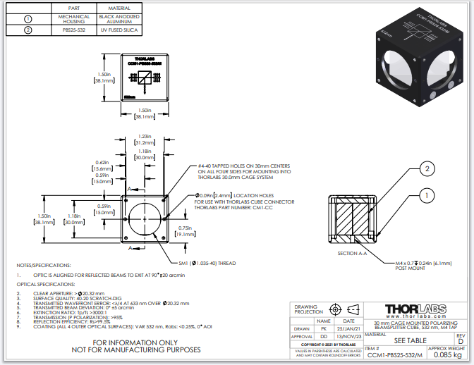 Thorlabs索雷博 CCM1-PBS25-532/M - 偏振分束立方