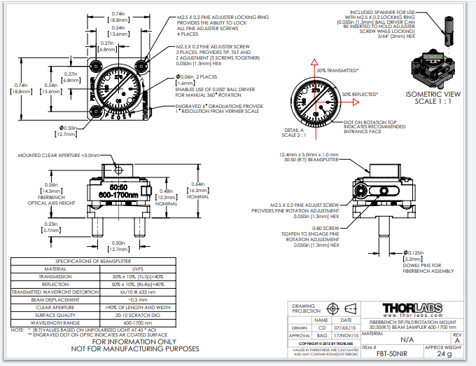 Thorlabs索雷博 FBT-50NIR - Fiberbench分束器模块