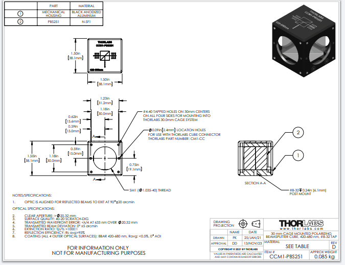 Thorlabs索雷博   CCM1-PBS251 - 偏振分束立方