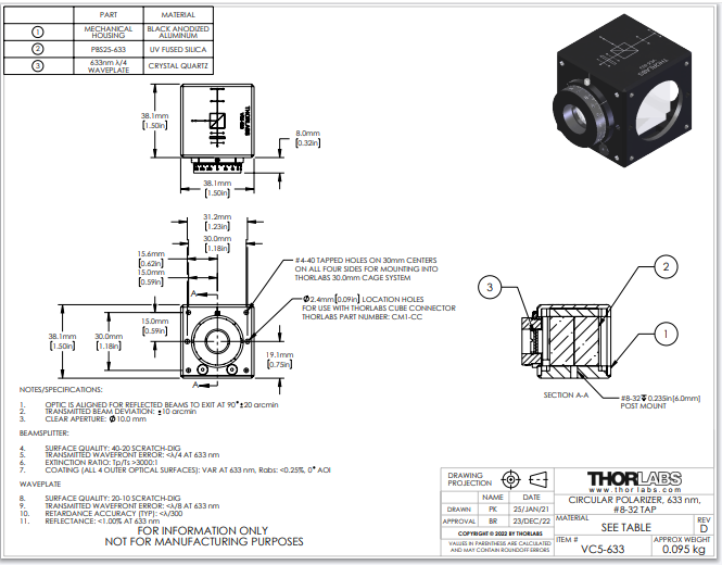 Thorlabs索雷博 VC5-633 - 可变圆偏振片