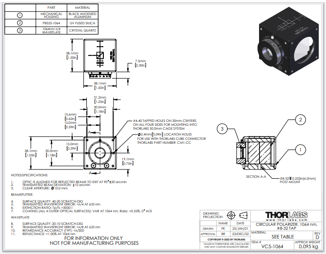 Thorlabs索雷博 VC5-1064 - 可变圆偏振片