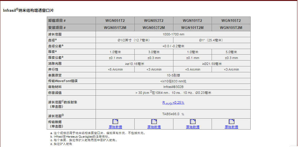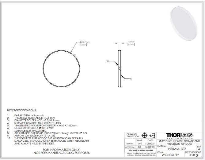 Thorlabs索雷博 WGN051FT2 - Infrasil增透窗片