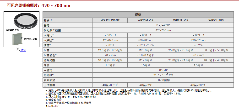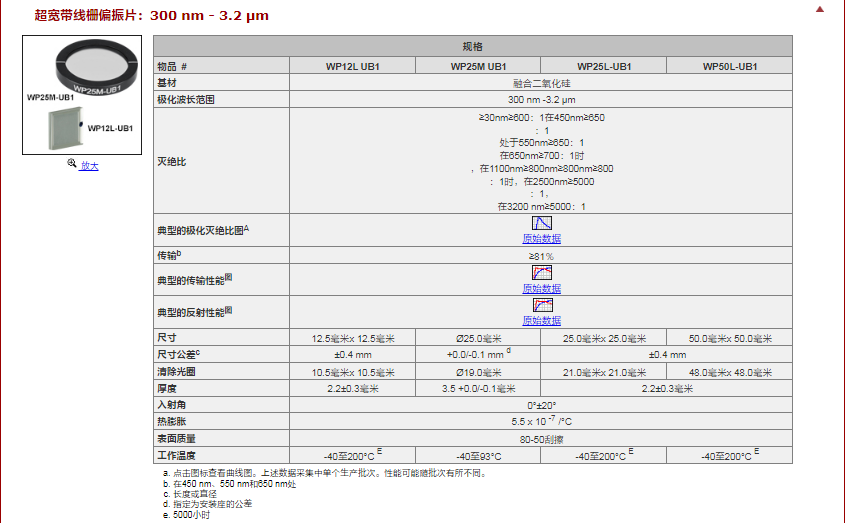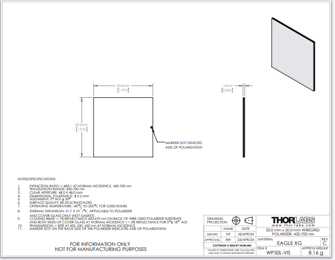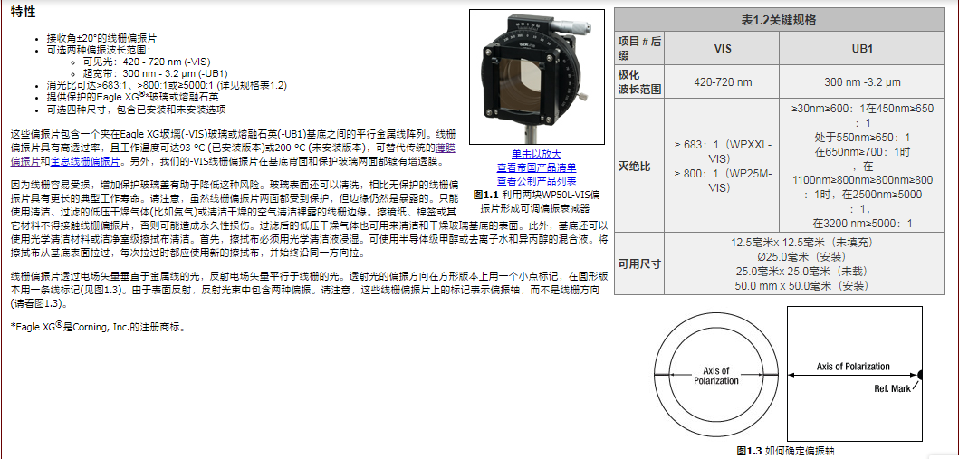 Thorlabs索雷博 WP50L-VIS - 线栅偏振片